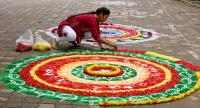 Ladies take part in rangoli competition as part of Karnataka Rajyotsava organised by Cubbon Park Walkers Association , in Bengaluru on Sunday 13th November 2022