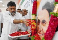 KPCC President DK Shivakumar and Congress leaders pay floral tribute Former PM Indira Gandhi portrait on her birth anniversary at KPCC office, in Bengaluru on Saturday 19th November 2022