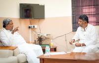 KPCC President DK Shivakumar and Former CM and CLP leader Siddaramaiah seen discussing at KPCC office, in Bengaluru on Saturday 26th November 2022