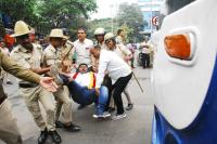 | Event Details: | Police personnel arrest members of Kannada Rakshana Vedike outside Maharastra Bank, as they tried to put black paint the Bank Hoardings at Gandhi Nagar during their protest against the Maharashtra government, over the border issue between Karnataka and Maharashtra, in Bengaluru on Friday 9th December 2022 |