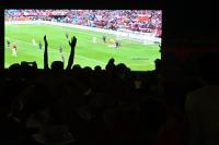 Football lovers watching FIFA 2022 World Cup final match between France and Argentina at Austin Town football grounds, in Bengaluru on Sunday 18th December 2022