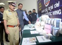 Bengaluru Police Commissioner Pratap Reddy and CCB officials inspecting the seized drugs and weapons during a press conference at Police Commissioner office, in Bengaluru on Friday 30th December 2022