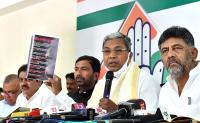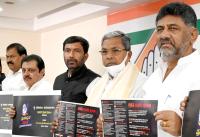 Former CM and Congress Leader Siddaramaiah with KPCC President DK Shivakumar and Congress leaders releasing BJP scams posters during joint press conference at KPCC office, in Bengaluru on Tuesday 10th January 2023