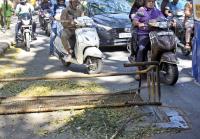 Damaged manhole at Queens Road, causing inconvenience to the motorists and public, in Bengaluru on Thursday 12th January 2023