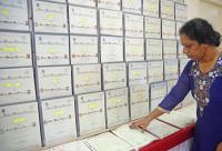Police Commissioner Pratap Reddy and CCB officers inspecting the seized fake marks cards for different courses of different universities in the state, in Bengaluru on Friday 27th January 2023