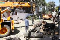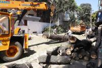 Huge tree branches being chopped by BBMP as safety measurements at Malleshwaram, in Bengaluru on Saturday 28th January 2023