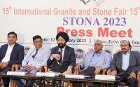 | Event Details: | President, STONA Ishwinder Singh with Vice President Manoj Kumar Singh, General Secretary S Krishna Prasad and others during a press conference on STONA 2023, 15th International granite and stone fair, in Bengaluru on Friday 10th February 2023 |