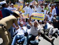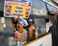 Aam Aadmi Party (AAP) members being detained as they protest against the central government allegedly supporting industrialist Goutham Adani, in Bengaluru on Sunday 12th February 2023