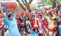 KPCC women congress leaders carrying cylinder to protest against hike in LPG prices, in Bengaluru on Thursday 2nd March 2023