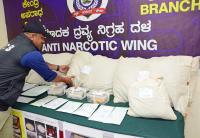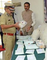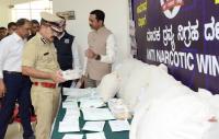 Police Commissioner Pratap Reddy inspecting the seized drugs worth 2 crore 48 lakhs, during the property parade at Police commissioner office, in Bengaluru on Thursday 16th March 2023