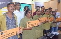Vimal Kumar CEO and Founder of Namma Yatri addressing along with the auto drivers during the launch of Bengaluru based auto booking app Namma Yatri at Press Club, in Bengaluru on Thursday 16th March 2023