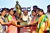 Chief Minister Basavaraj Bommai during presentation of Gandhi Grama Award at Palace Grounds, in Bengaluru on Friday 24th March 2023