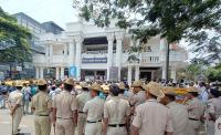 Supporters of Tarikere Assembly constituency MLA ticket aspirant Gopikrishna protesting for the B form at KPCC office, in Bengaluru on Monday 3rd April 2023