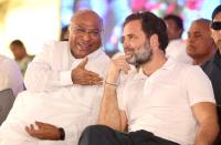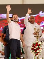 | Event Details: | AICC President Mallikarjuna Kharge with Congress leader Rahul Gandhi, KPCC President DK Shivakumar, Siddaramaiah, KH Muniyappa and others during Congress Jai Bharath Convention, in Kolar on Sunday 16th April 2023 |