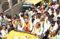 BJP Gandhi Nagar MLA candidate Sapthagiri Gowda arriving with his supporters to submit his nominations paper for the Assembly elections at Electoral office at Gandhi Nagar, in Bengaluru on Tuesday 18th April 2023