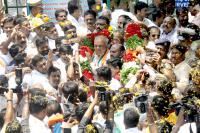 Congress BTM Layout MLA candidate Ramalinga Reddy arriving with his supporters to submit his nominations paper for the Assembly elections at Electoral office at Koramangala, in Bengaluru on Tuesday 18th April 2023