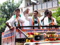 Congress leader MR Seetharam with others campaigned for Malleshwaram Congress candidate Anup Iyengar, in Bengaluru on Sunday 30th April 2023