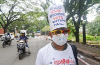 Parmesh from Bagalkot walks through the city to create awareness in Public not to sell their vote and to vote compulsorily, in Bengaluru on Monday 8th May 2023