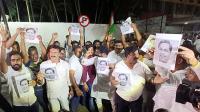Supporters of Siddaramaiah outside the Congress legislature party (CLP) meeting at Shangri La hotel, in Bengaluru on Sunday 14th May 2023