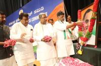 Chief Minister Siddaramaiah with DCM DK Shivakumar paid floral tribute to Former PM Rajiv Gandhi during the death anniversary programme at the party office, in Bengaluru on Sunday 21st May 2023