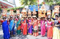 Villagers carrying Kalasa on the occasion of Sarakki village festival, in Bengaluru on Wednesday 24th May 2023