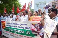Members of JCTU staged a protest to express solidarity with wrestlers protest against WFI President Brij Bhushan Singh at Freedom Park, in Bengaluru on Thursday 1st June 2023