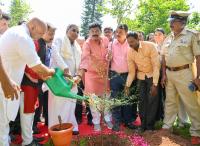 CM Siddaramaiah and Minister Shivaraj Tangadagi plant a sapling as part of Former CM Devraj Urs death anniversary at Vidhana Soudha, in Bengaluru on Tuesday 6th June 2023