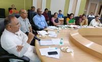 Health and Family welfare Minister Dinesh Gundu Rao meeting with senior officers at the district level regarding the overall performance of the department, in Bengaluru on Friday 9th June 2023