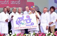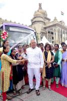 Chief Minister of Karnataka Siddaramaiah and Deputy CM DK Shivakumar launch free bus travel “Shakthi Scheme” for Women at Vidhana Soudha, in Bengaluru on Sunday 11th June 2023