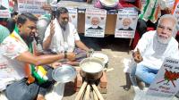 Members of Bengaluru City Youth Congress protesting against BJP central government for not providing rice to Karnataka government Anna Bhagya scheme, in Bengaluru on Friday 16th June 2023