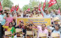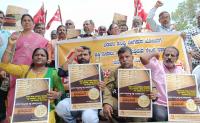 Members of CPIM protesting against central government for not providing rice at Freedom park, in Bengaluru on Thursday 22nd June 2023