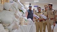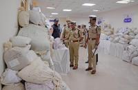 Bengaluru City Police Commissioner B Dayananda inspects a pile of seized drugs on the International Day against Drug Abuse and Illicit Trafficking, in Bengaluru on Monday 26th June 2023