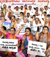 | Event Details: | Former CMs BS Yediyurappa, Sadananda Gowda, BJP State President Nalin Kumar Kateel, BJP leaders protest against the state Congress government demanding the effective implementation of the Congress pre poll guarantees without conditions, in Bengaluru on Tuesday 4th July 2023 |