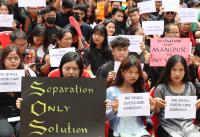 Members of Unau Tribal Forum during a demonstration in support of Kuki Zo Tribals of Manipur, in Bengaluru on Tuesday 1st August 2023