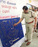 Police officers inspect the recovered jewels worth 78 lakhs which were recovered by Sanjay Nagar police station personnel, in Bengaluru on Saturday 5th August 2023