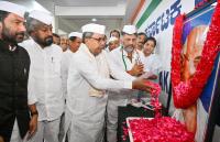 | Event Details: | Chief Minister of Karnataka Siddaramaiah with DCM DK Shivakumar and Congress leaders pays floral tribute to the Mahatma Gandhi portrait on the eve of Quit India Movement at KPCC office, in Bengaluru on Wednesday 9th August 2023 |