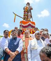 Chief Minister of Karnataka Siddaramaiah with DCM of Karnataka DK Shivakumar and others during the 226th Jayantotsava program of Krantiveera Sangolli Rayanna, in Bengaluru on Tuesday 15th August 2023