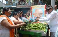 Vatal Nagaraj and his supporters staged a protest against the increasing vegetable prices at SBM Circle, in Bengaluru on Tuesday 15th August 2023