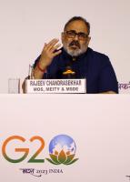 | Event Details: | Union minister for Electronics and information Technology Rajiv Chandrashekar along with sec. MEITY Alkesh Kumar Sharma, CEO of MYGOV Akash Traipathi and others during the Inauguration the G20 Digital Innovation Alliance Summit 2023 at Palace Grounds, in Bengaluru, Thursday, August 17, 2023 |