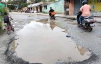 Pothole road at Railway gate in KR Puram constituency and has been causing major inconvenience to people and motorists, in Bengaluru on Tuesday 5th September 2023