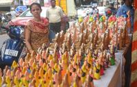 Ganesha Idols on sale at RV Road ahead of Ganesh Chaturthi festival, in Bengaluru on Friday 15th September 2023
