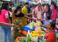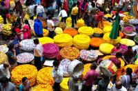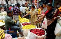 People shopping flowers on the eve of Ganesh Chaturthi Festival, in Bengaluru on Saturday 16th September 2023