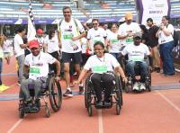 Disabled participants run with the aid of Assistive Technology during a WIPRO Bengaluru marathon at Kanteerava Stadium, in Bengaluru on Saturday 7th October 2023