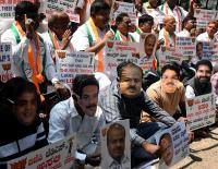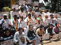 Members of Karnataka Congress staged a protest against the Karnataka State BJP and JDS at Congress Bhavan, in Bengaluru on Wednesday 18th October 2023