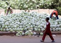 Gray pumpkins on sale at KR Market, ahead of Ayudha Pooja festival, in Bengaluru on Thursday 19th October 2023