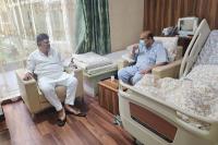 DCM DK Shivakumar visited and enquired about the health condition of former CM Basavaraja Bommai who is undergoing treatment at Fortis Hospital, in Bengaluru on Saturday 21st October 2023