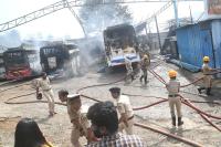 | Event Details: | Fire brigade personnel douse the fire at the Bus mechanic garage at Hoskere Halli, Giri Nagar police station limits, in which more than 10 buses were burnt and no one was injured, in Bengaluru on Monday 30th October 2023 |