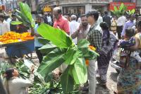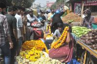 People shopping flowers and decorative items at KR Market on the occasion of Deepavali festival, in Bengaluru on Sunday 12th November 2023