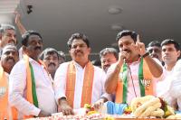 BJP State President BY Vijayendra and Opposition party leader R Ashoka during their visit to BJP office, in Bengaluru on Saturday 18th November 2023