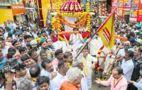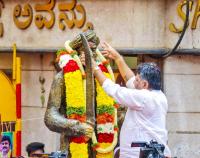 DCM DK Sivakumar during the Kempegowda era bullock cart procession at Chickpet, as part of the Unboxing Bangalore festival, in Bengaluru on Thursday 30th November 2023